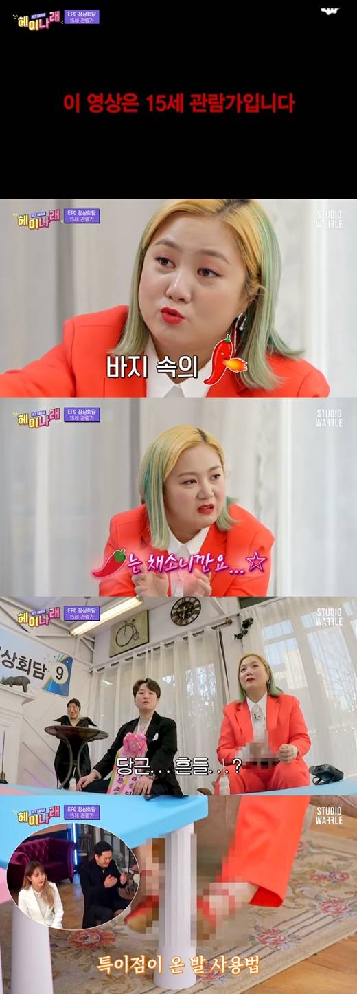 '헤이나래' 0회에서 박나래는 "바지 속의 고추"라는 말을 내뱉어 헤이지니를 깜짝 놀라게 만들었다. 박나래는 제작진을 향해 "바지를 삐처리 해달라. 고추는 채소기 때문에 나가도 된다"고 말했다.