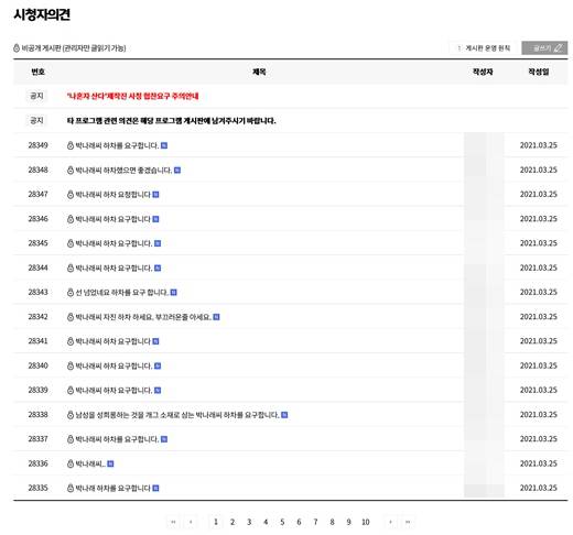 다른 프로그램까지 이번 논란의 여파가 미쳤다. 박나래가 출연 중인 '나 혼자 산다' 시청자게시판에 박나래 하차 요구가 쏟아지고 있는 것. 네티즌들은 "성희롱 일삼는 박나래 하차 요구합니다", "박나래씨 자진 하차 하세요", "박나래씨 하차 해야 됩니다" 등의 글을 남기며 불쾌감을 표했다.