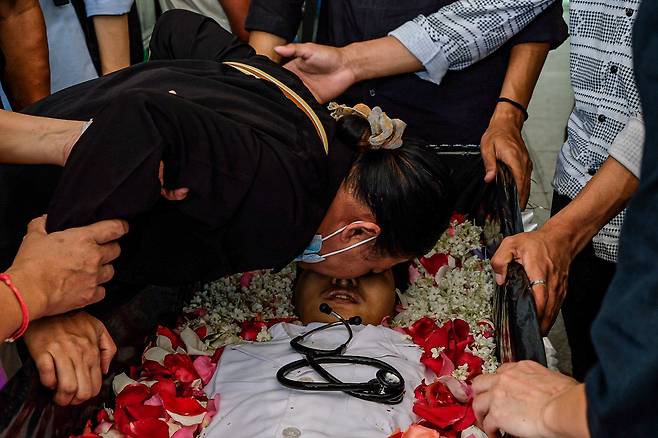 | ▲ 3월 14일 숨진 양곤대 의과대학 1학년 칸 네이 하잉(Khant Nya Hein)의 장례식이 이틀 뒤인 16일 양곤의 한 공원묘지에서 엄수됐다. 사진을 보내온 미얀마 사진기자 모임 'MPA(Myanmar Pressphoto Agency)'는 "가족과 수많은 의대생 동료들이 그와 함께했다"고 전했다. |