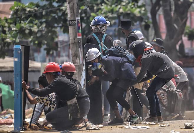 | ▲ 군부 쿠데타에 저항하고 있는 미얀마 양곤의 흘라잉따야(Hlaingthaya)의 3월 16일 모습. 이곳은 이틀 전인 14일 계엄령이 선포돼 수많은 사상자가 나온 지역이다. 미얀마 사진기자 모임 'MPA(Myanmar Pressphoto Agency)'는 "대규모 학살이 일어났음에도 시위는 여전히 진행되고 있다"며 "총에 맞아 숨진 31명의 장례식이 17일 공동묘지에서 진행됐다"고 전했다. |