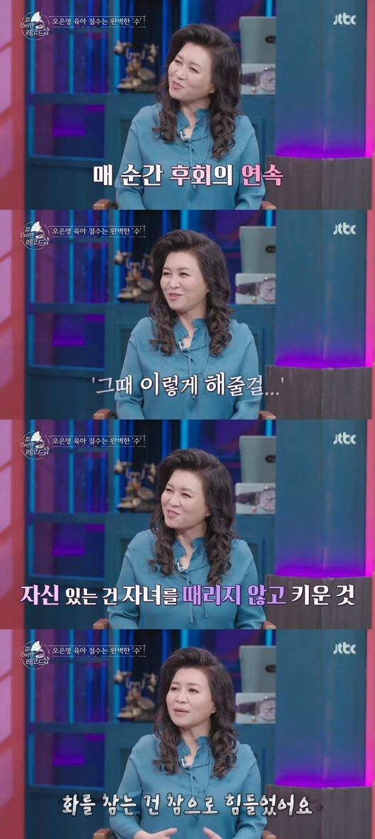 이날 오은영 박사는 "저도 아이를 키우면서 실수를 많이 했다. 하지만 잘 했다고 생각이 드는 것은 매를 들지 않고 육아를 했다는 것"이라고 밝혔다. 또 "매 순간 후회의 연속이었다. '이렇게 해줄 걸'이라는 생각을 많이 했다. 화를 참는 건 참으로 힘들었다"고 이야기해 모두를 놀라게했다.