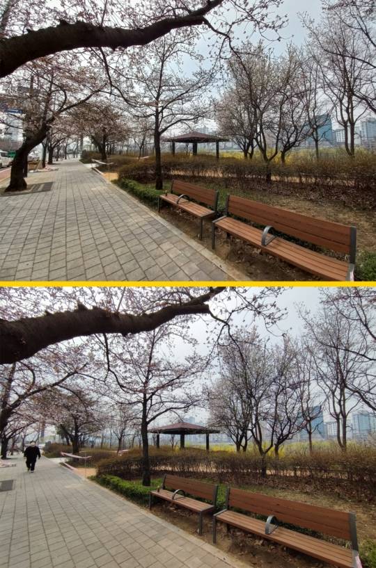 직접 사진을 찍어 비교해보니 주간 환경에선 더 많은 픽셀 수를 확보한 홍미노트10 프로의 사진이 선명함에선 앞섭니다. 별다른 조작 없이 기본 세팅값으로 촬영했을 때 픽셀을 묶는 픽셀비닝을 통해 두 모델 모두 1,200만 화소로 촬영하게 되는데요. 이 때의 품질 차이는 크게 나지 않았습니다.