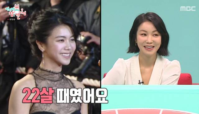 칸에 갔던 김옥빈은 "당시 22살이었다"며 자료화면을 보고 민망해했다. 예쁜 시스루 드레스를 입은 김옥빈의 외모가 인형같은 모습.