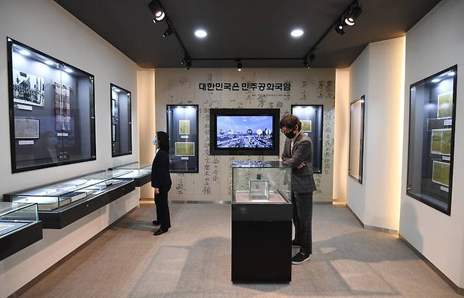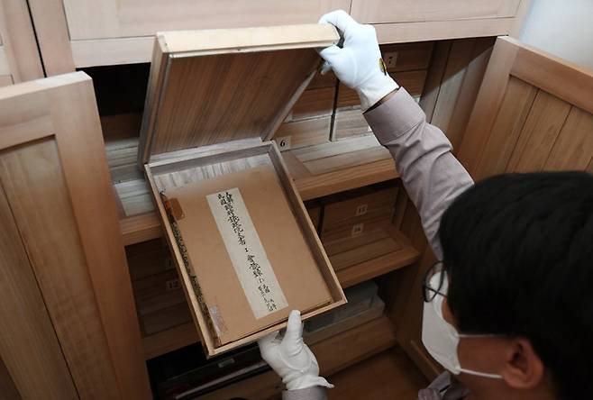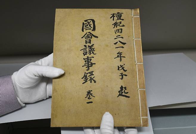 국회도서관 수장고에 보관 중인 임시의정원 문서를 기록관리과 직원이 조심스레 꺼내 보여주었다.