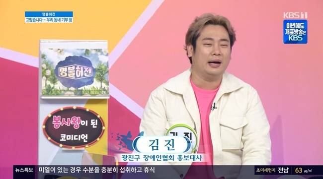 이날 김진은 "제가 틱장애가 있었다. 지금도 눈을 깜빡거리고 있는데 감사하게 많이 호전됐고 정상수치에 가까워졌다"며 "생활도 잘하고 있는데 봉사 활동을 통해서 더 많은 것들을 배웠다"고 인사했다.