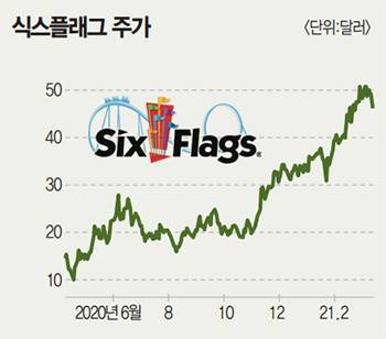 영업 재시작 소식에 식스플래그 주가는 고공행진한다. 3월 24일 종가는 45.84달러. 이날 기준 6개월 상승률은 118.6%, 1년 상승률은 204.8%다. 에릭 월드 B라일리증권 애널리스트는 “최근 캘리포니아 주정부가 테마파크 개장을 허용했는데 이를 계기로 주가가 재평가받게 될 것”이라며 목표주가를 기존 50달러에서 60달러로 올렸다.