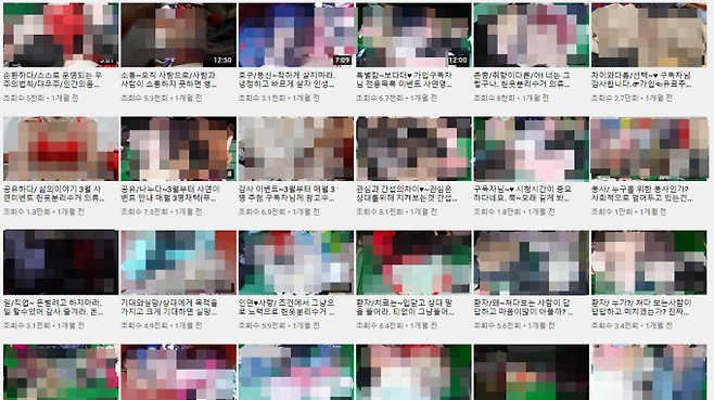일부 영상 제목에는 '남자가 모르는 여자 속옷' '변태' '관음증' '노출증' 등 자극적인 키워드가 포함돼 있다.