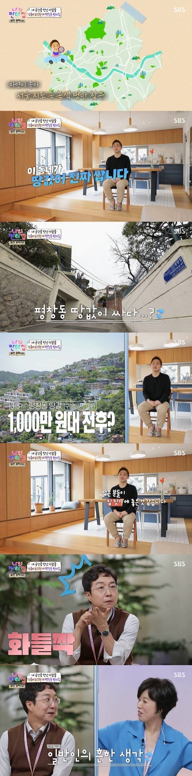 이어 집주인은 “처음에 땅을 보러 다닐 때 초록색만 봤다. 초록색 옆에 살고 싶었다. 땅만 3년을 보러 다녔다. 찾다 보니까 여기까지 들어왔다. 여기가 땅값이 싸다. 젊은 분들이 집짓기 좋은 것 같다”며 서울 평창동 땅값이 싼 편이라고 말해 박미선과 유현준을 깜짝 놀라게 했다.