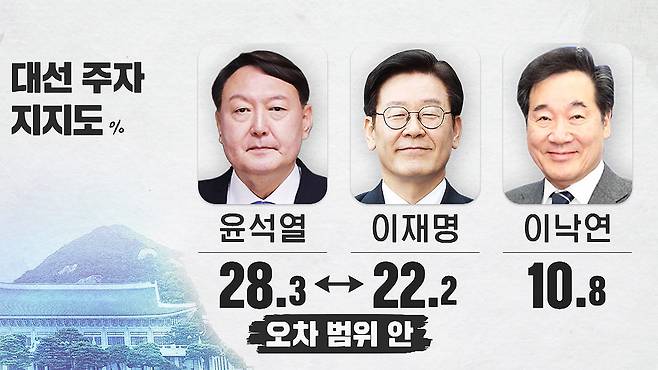 윤 전 총장과 이 지사 지지율은 오차 범위 안에 있습니다.