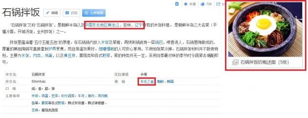 최근 김치와 삼계탕 기원 논란을 일으키고 있는 중국이 또 다시 한국 전통음식의 유래를 왜곡하고 있어 논란이 예상됩니다. 바이두는 한국의 네이버와 같은 대표적인 포털 사이트로, 현지 검색 엔진 분야에서 점유율 1위를 기록하고 있습니다. 중국 대표 포털에서 한국의 돌솥비빔밥의 유래를 교묘하게 기술하고 있어 중국 이용자들에게 혼란을 주고 있습니다.