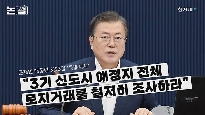 이튿날 문재인 대통령이 3기 신도시 예정지 전체의 토지거래를 철저히 조사하라고 지시합니다.