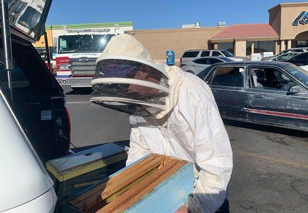 존슨 씨는 망설임 없이 양봉 장비와 안전한 복장을 갖춰 마트로 출동했습니다.