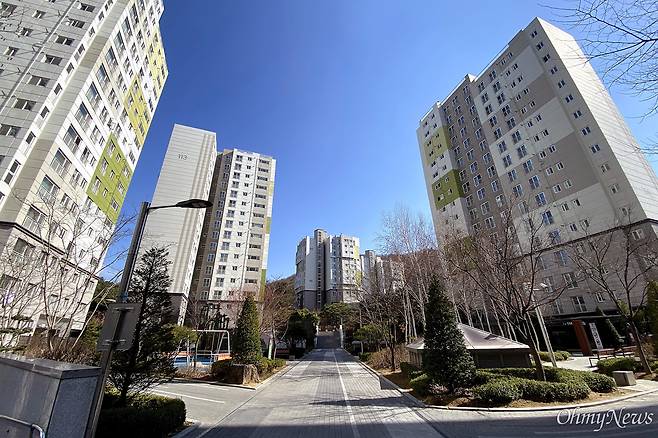 | ▲ 22일 오후 국민의힘 오세훈 서울시장 후보의 처가 땅 '셀프 특혜' 의혹이 일고 있는 서울 서초구 내곡동의 한 아파트 단지(2009년 보금자리주택지구 지정). |