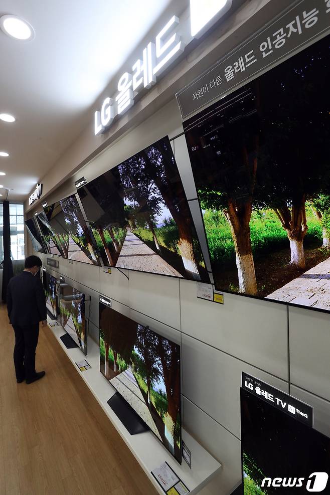 (서울=뉴스1) 황기선 기자 = 5일 서울시내 한 전자제품 매장에 LG TV가 진열돼 있다.