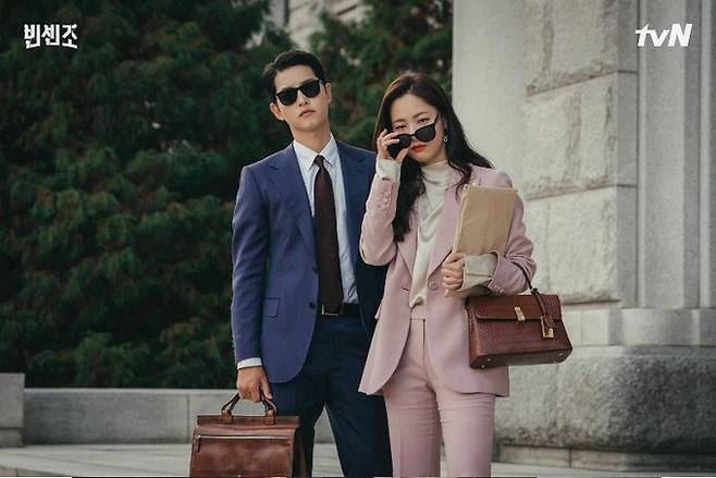 tvN 토·일 드라마 ‘빈센조’에서 젊고 유능한 변호사인 홍차영 역을 맡은 여주인공 전여빈(사진 오른쪽)이 스타일링으로도 연일 화제몰이 중이다.