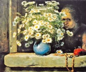 데이지꽃 한 무더기가 소박한 화병에 담긴 채 햇살을 받고 있다. 꽃 더미 뒤로 수줍은 미소를 지으며 고개를 내민 여인이 보인다. 화병 옆에 바늘꽂이와 가위가 놓여 있는 것으로 보아 바느질 중 작은 여유를 즐기고 있는 것이리라. 가난하다고 아름다움을 모르지는 않을 터. 데이지꽃은 서민의 곤궁한 일상에서 아름다움을 구할 수 있는 가장 저렴한 방법이었을 것이다. 장 프랑수아 밀레(1812~1875)의 말년 작품 ‘데이지꽃 다발’이다.