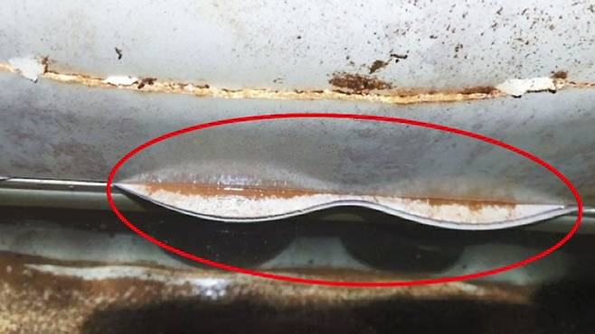 [물탱크 청소업체 관계자 : 일반 현상인 게 반복 수압이 있어서, 말 그대로 물이 빠졌다 들어갔다 하니까 시간이 지나다 보면 자연스럽게 (실링재가) 나온다.]