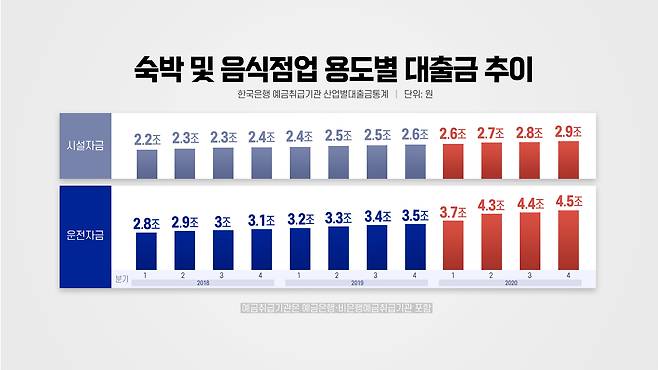 지난 한 해 동안 법인음식점 대출금은 9% 증가했지만, 비법인음식점 대출금은 3.1조 원에서 3.8조 원으로, 22% 늘어난 것으로 나타났습니다. 상대적으로 영세한 음식점이 부채 부담을 더 짊어지게 사실을 다시 한번 확인할 수 있습니다. 단지 일부 업종에서는 예상보다 폐업이 많이 늘어나지 않는다고 해서 결코 자영업이 잘 버티고 있다고 말할 수 없는 또 다른 증거입니다. 자영업 운영난이 지속할 경우 거시 경제와 금융권까지 흔드는 잠재적인 위협 요소로 작용할 수 있기 때문입니다.
