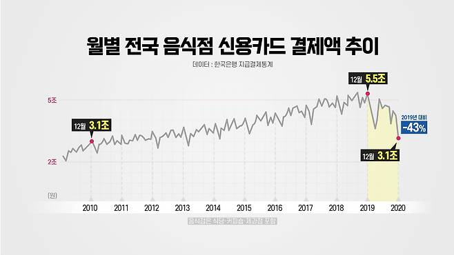 <코로나 여파로 전국 음식점 신용카드 매출 '뚝'>