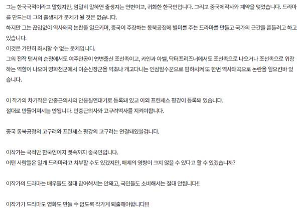 하지만 오얏나무 아래서 갓끈 고쳐 매고 오이밭에서 신발 고쳐 신는 사람들을 묻지도 않고 때려잡는 건 크게 이상하고 잘못된 일이다. 박계옥 작가가 <조선구마사>에서 묘사한 조선의 그림이 이상해 보일 수는 있다. 이에 문제의식을 가지고 항의하는 것도 그럴 수 있다. 그러나 그것이 묻고 답하고 되묻는 논의로 이어지는 것이 아니라, '동북공정의 일환일 것', '작가가 조선족인 듯' 같은 음모론과 인종주의적 선동을 거쳐서 드라마 폐지운동으로 이어지는 것은 폭력이다. 논의가 이뤄질 시간도 공간도 모두 사라진 자리에 남은 건 실력행사였다.