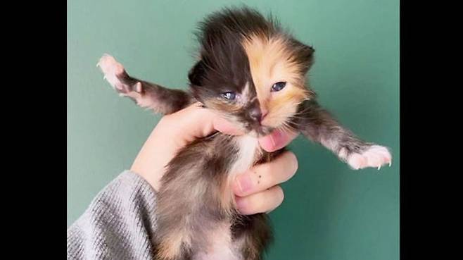 작은 얼굴에 선명한 두 고양이..엄마 배에서 DNA 섞였다