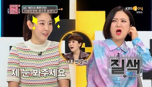이날 사연의 고민녀는 쌍꺼풀 수술을 말리는 남직원이 썸인지 아닌지 물어왔다. 이에 한혜진은 “저랑 같이 데뷔한 언니가 있다. 같이 쌍수를 하자. 인생의 반은 쌍꺼풀로 살아봐야 하지 않겠니? 올해 약속을 했다. 그래서 심각하게 고민 중이다”고 자신도 성형수술을 고민중이라고 털어놔 모두를 놀라게 했다.