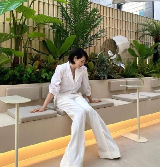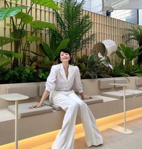 공개된 사진에는 흰 셔츠와 풍성한 팬츠를 입은 김혜수가 야외에 앉아 환하게 웃는 모습이 담겨있다.