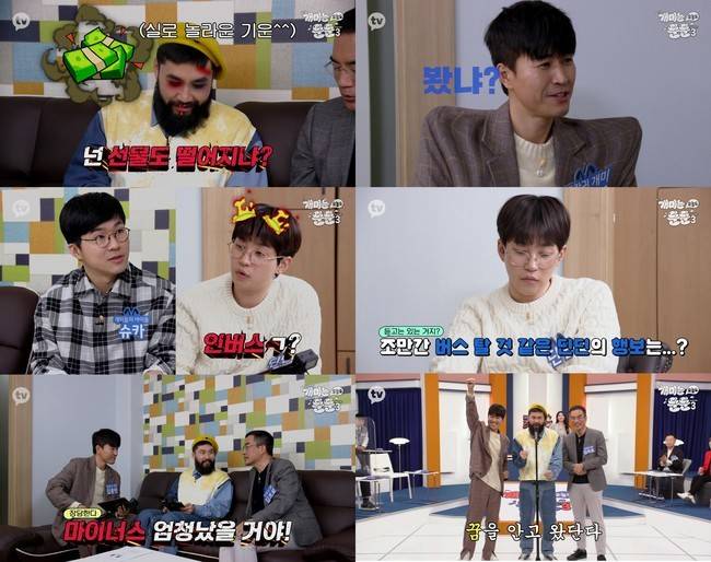 포트폴리오 점검을 마친 양팀은 노홍철, 김종민, 김프로의 ‘해뜰날’ 쌩목 라이브로 본격 녹화를 다시 시작했다. 세 사람은 대한민국 개인 투자자의 해뜯날을 기원하는 의미로 라이브를 선보였지만, 세 사람의 모자라는 가창력으로 녹화장을 폭소의 도가니로 만들었다. 이어 시작된 부부 클리닉은 ‘빚을 내서 하는 투자’를 의미하는 ‘빚투’에 대한 에피소드로 후끈 달아올랐다. 일반인 출연자인 ‘불나방 부부’의 빚투 경험담 고백에 이어 개그맨 김학래의 상상 초월 주식 투자 경험에 스튜디오는 물론 보는 이들의 웃음을 자아냈다.(사진=카카오TV)