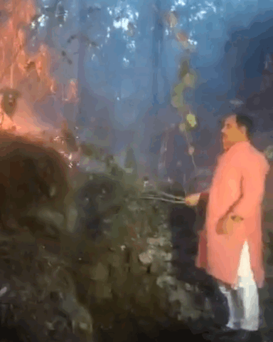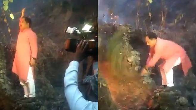 현지 시간으로 6일 인도 힌두 신문 등 외신들은 산불 현장에 나선 하라크 라와트 산림부 장관의 영상이 온라인상에서 논란을 불러일으켰다고 보도했습니다.
