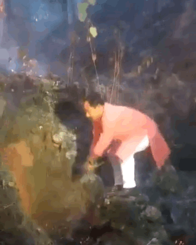 나뭇가지로 불씨를 두드리듯 때리는 행동은 작은 산불을 초기 진압할 수 있는 실제 행동 요령으로 알려져 있습니다. 하지만 라와트 장관의 느린 동작에 불씨는 잦아들다가도 다시 커지기를 반복했습니다. 사실상 의미 없는 행동을 '보여주기' 식으로 반복한 셈입니다.