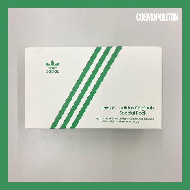 ‘세줄 간지’ 장착한 이 박스의 정체가 뭐냐고? 바로 오늘부터 6천 개 한정 판매로 출시된 잇템! 정체가 더욱 궁금해지는 이것은 삼성전자가 아디다스 오리지널스(adidas Originals)와 지속가능한 미래를 주제로 기획한 ‘갤럭시 버즈 프로 with 아디다스 오리지널스 스페셜 팩’이다.