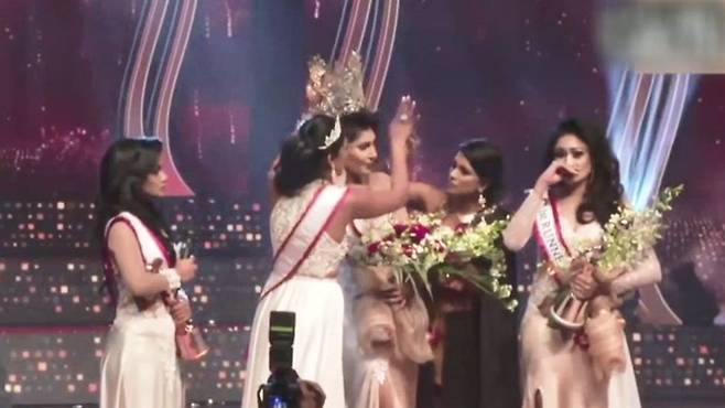 기혼자를 대상으로 하는 스리랑카의 미인대회, '미시즈 스리랑카 월드' 시상식 현장입니다.