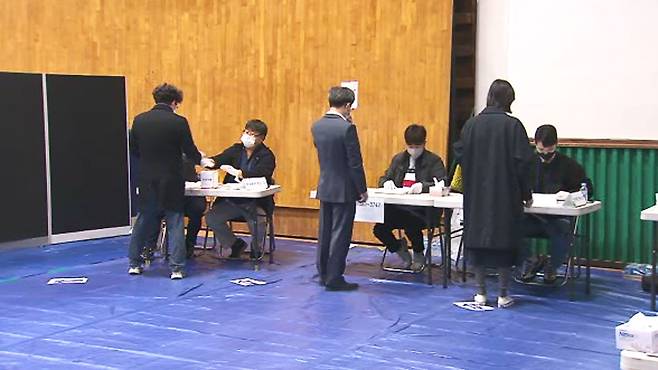 퇴근 시간 무렵인 한 시간 전쯤부터 다시 이곳 투표장을 찾는 인원이 조금씩 늘었습니다.