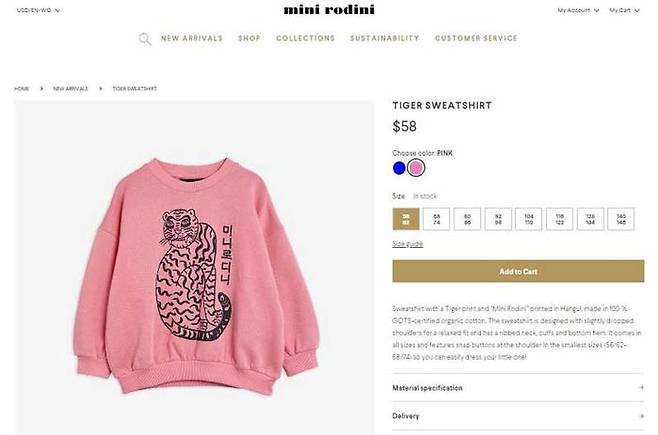 패션업계에 따르면 화려한 패턴으로 국내에서 인기를 끌고 있는 스웨덴 아동복 브랜드 '미니로디니'는 올해 봄·여름 시즌 컬렉션으로 한글이 쓰인 상품을 출시했습니다.