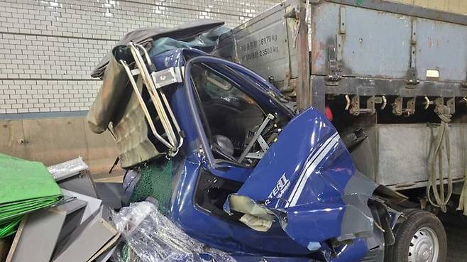 이 사고로 1톤 트럭 운전자 60대 남성이 크게 다쳐 인근 병원으로 옮겨졌습니다.