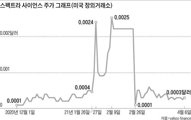 이런 특성 때문에 동전주 투자는 투기·도박과 다름없는 ‘초(超)고위험’ 상품 취급을 받는다. “사기에 이용될 위험이 높다”는 지적도 많다. 경쟁력 없는 회사의 주가가 아무 이유 없이 올랐다가 꺼지는 사례도 자주 나온다. 그 배경엔 합법과 불법의 경계에서 동전주 매수를 부추기는 ‘세력’들의 움직임이 있다. 소셜미디어에서 활동하는 자칭 투자 전문가와 정체 불명의 기관들이 있고, 아예 동전주를 전문적으로 다루는 매체도 등장했다. 스펙트라 사이언스가 거래 중단된 것도 소셜미디어를 통한 ‘작전’ 의심을 사서다. 이 회사는 2017년 이후 분기별 재무 보고서를 제출하지 않은 부실 업체였다.