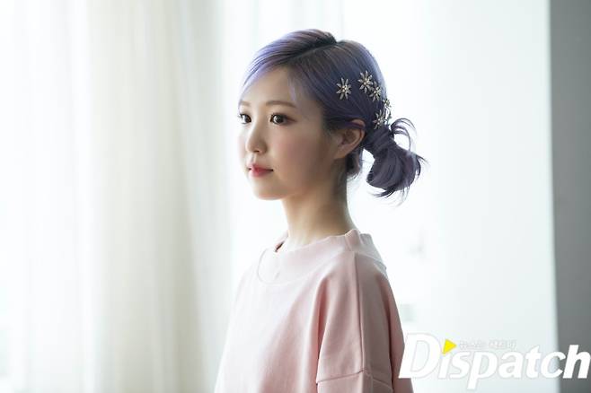 연보라색 염색 헤어가 만화 속 여주인공 같았다.