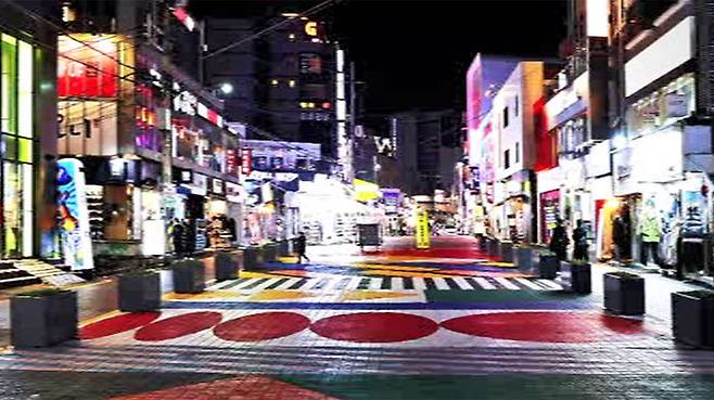 네, 그렇습니다. 제가 나와 있는 곳이 주점이나 클럽들이 많이 모여 있는 홍대 거리입니다.