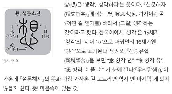 [한 週 漢字] 想(상)-내 '뜻'이라도 자세히 살펴 들여다봐야