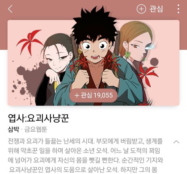 논란이 벌어진 작품은 네이버 금요 웹툰 '엽사: 요괴사냥꾼'으로, 지난 3월 25일 1화가 공개됐다. 요괴가 등장하는 난세의 시대를 배경으로, 부모에게 버림받고 생계를 위해 약초꾼으로 살아가는 소년이 주인공인 작품이다.