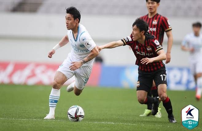 성남FC와 6라운드 경기에서 퇴장당해 최근 2경기에 나서지 못한 송민규가 복귀하자마자 터트린 시즌 4호 골이었습니다.