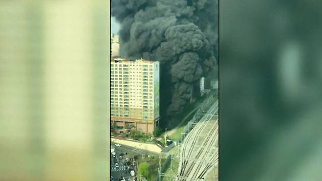 시꺼먼 연기가 무서운 기세로 하늘로 솟구치고 연기 사이로 시뻘건 불길이 치솟습니다.