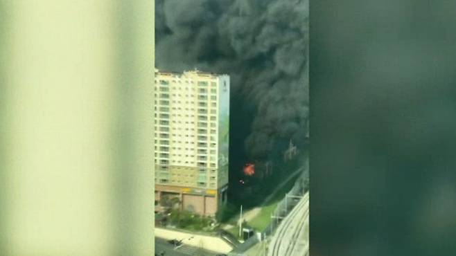 앞서 영상에서도 보셨겠지만, 건물 1층과 주차장 출입구에서 빨간 불길과 함께 검은 연기가 솟구치는 거 보셨을 텐데요.