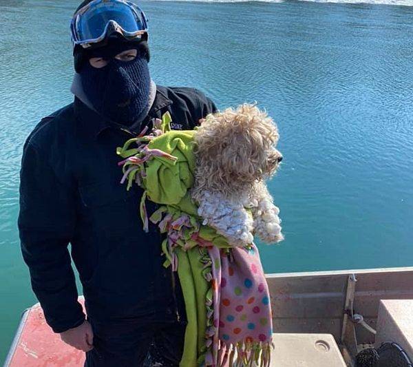 추운 겨울 강 위에 나흘 동안 고립되어 있던 강아지가 최고의 '해피 엔딩'을 맞았습니다.