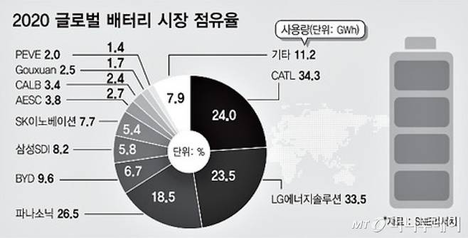 정 총리의 지적대로 양사가 다투는 동안 중국과 유럽의 배터리 업계는 성장세를 거듭했다. 글로벌 시장조사업체 SNE리서치의 집계에 따르면 중국 CATL의 글로벌시장 점유율이 24.0%로 치솟으면서 LG에너지솔루션(23.5%)을 제치고 점유율 1위 업체로 올라섰다. 또다른 중국 회사인 BYD와 CALB도 각각 점유율이 9.6%로, 3.4%로 올랐다.