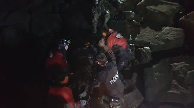 마침 인근에서 산책하던 주민이 외침을 듣고 112에 신고했고, 구조대원이 포복으로 이동하며 헤엄쳐 방파제로부터 약 20m 떨어진 남성을 구조했습니다.