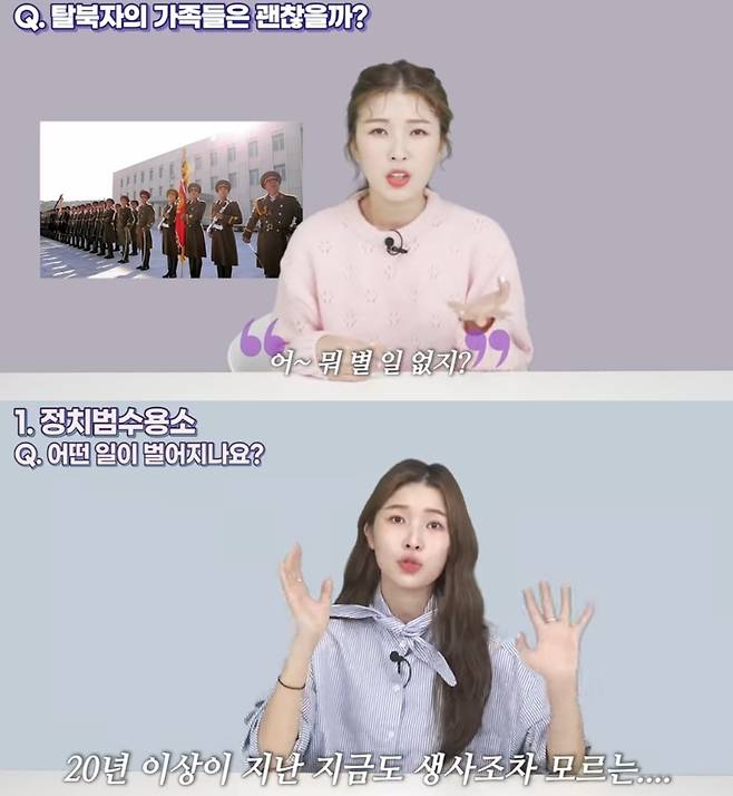 탈북자 유튜버가 100명이 넘어요. 한국과 북한의 언어, 문화적인 격차를 좁히고자 만든 분들이 많아요. 단지 돈벌려고 유튜브 시작했다는 분들도 있는데 그렇지 않아요. 통일로 가는 길에 밑거름이 되기 위해 노력한다는 걸 알아주셨으면 좋겠어요. 저도 그래서 딴 길로 새지 않고 관련 콘텐츠를 만들려고 노력해요. 제 구독자 대부분은 북한 이야기에 관심 있어 오신 분들이라 북한 관련 영상 제작하는 데서 크게 벗어나지 않을 것 같아요.