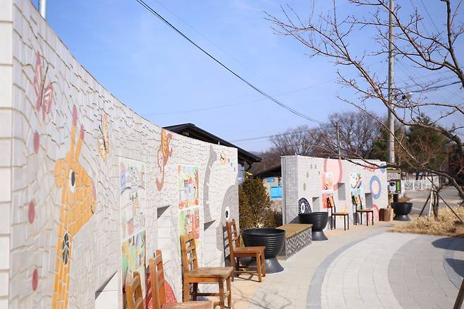 마을에 들어섰을 때 가장 먼저 눈에 띄는 것은 알록달록한 구조물이 있는 '대나무 공원'이다. 타일을 조각조각 붙여 만든 벤치와 벽은 방문객의 발걸음을 잠시 멈추게 한다. 대나무가 많은 동네였다는 마을의 특성을 살려 만든 대나무를 형상화한 설치물도 돋보인다. 김웅회 이장이 스페인의 세계적인 관광명소 구엘공원을 다녀온 뒤 감명을 받아 조성했다고. 옛 경로당과 빈집이 있던 자리가 이제는 죽리마을의 상징물이자 마을 옆의 죽리초등학교 어린이의 새로운 놀이터가 됐다.