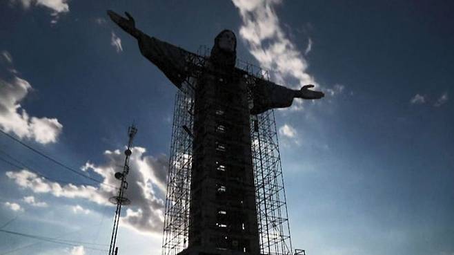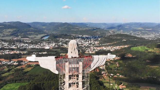 브라질 남부 엔칸타도에 건설 중인 엄청난 크기의 예수상이 그 모습을 드러냈습니다.
