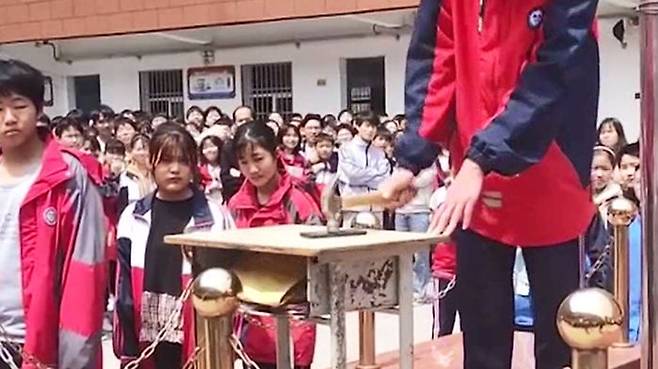 중국의 한 중학교에서 학생들의 휴대전화 사용을 줄이고 공부에 집중하도록 하기 위해서 망치로 휴대전화를 부수는 행사를 진행해서 논란이 일고 있습니다.